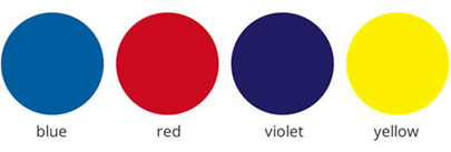 Vinilo opaco: azul, rojo, violeta y amarillo.